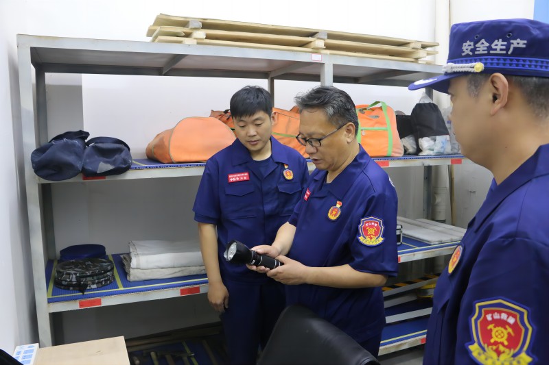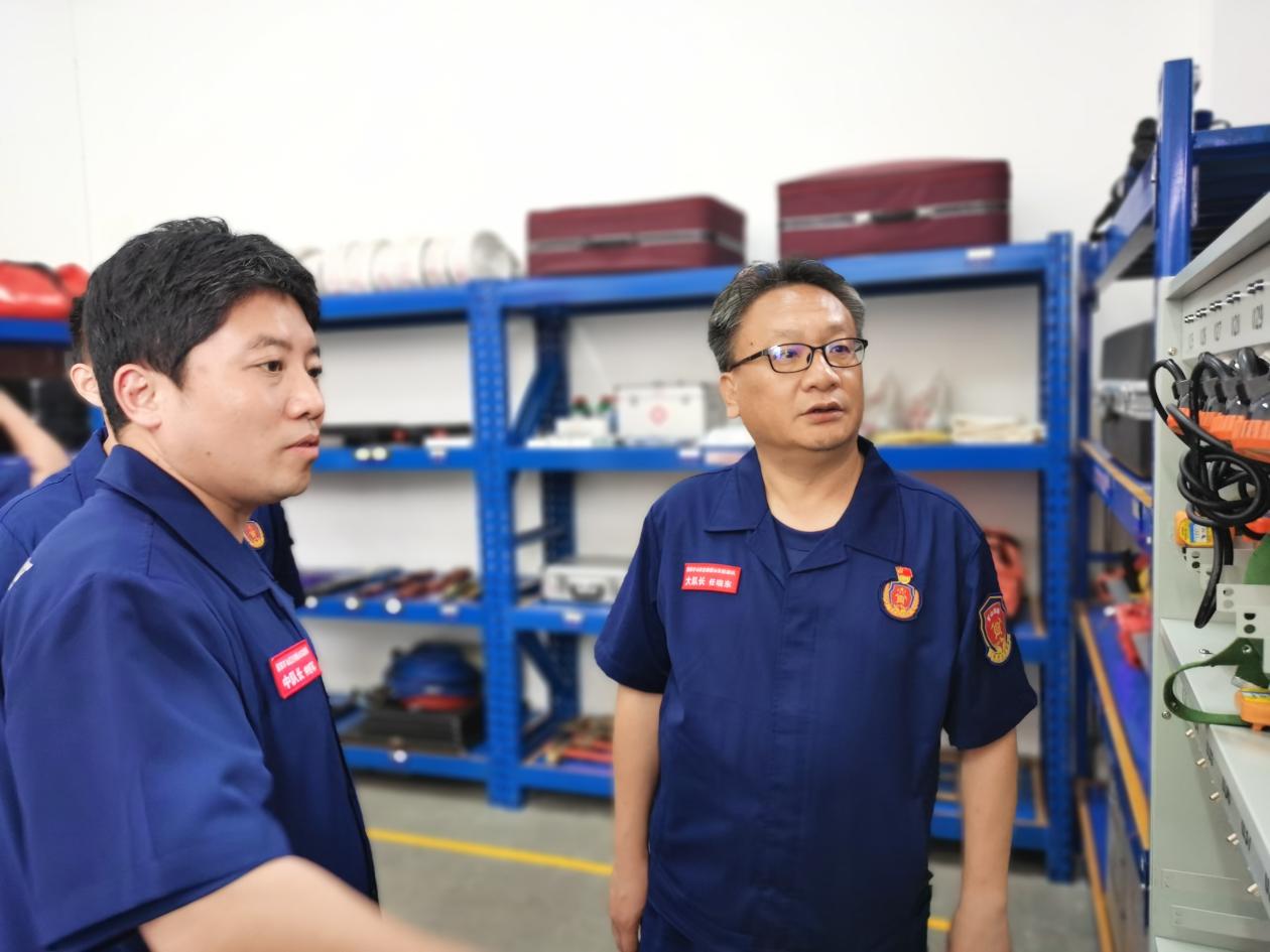 大队长任晓东分别听取了各中队战备值班、技术服务等方面工作汇报,对队员宿舍、学习室、装备库、车库、充氧泵房等基础建设进行了现场检查,对各中队在战备值班及技术服务等方面工作取得的成绩给予了充分肯定,并详细了解驻外指战员的工作学习生活情况,对在陕蒙矿区坚守值班指战员表示亲切慰问。