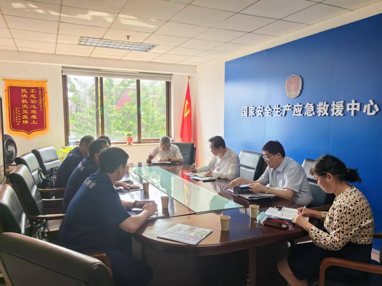 5月29日,大队长任晓东、副大队长王旭带领相关科室负责人到国家安全生产应急救援中心汇报国家矿山应急救援山东能源队队伍和基地建设情况。