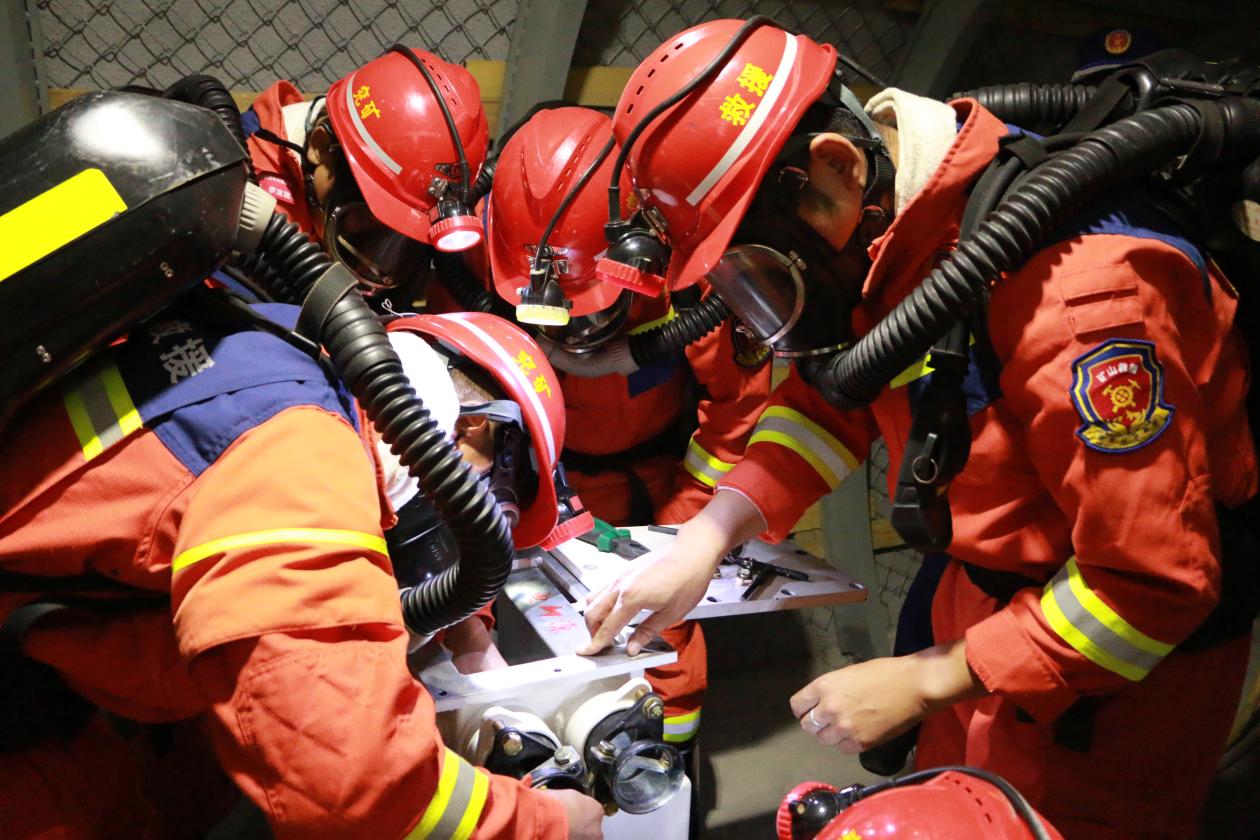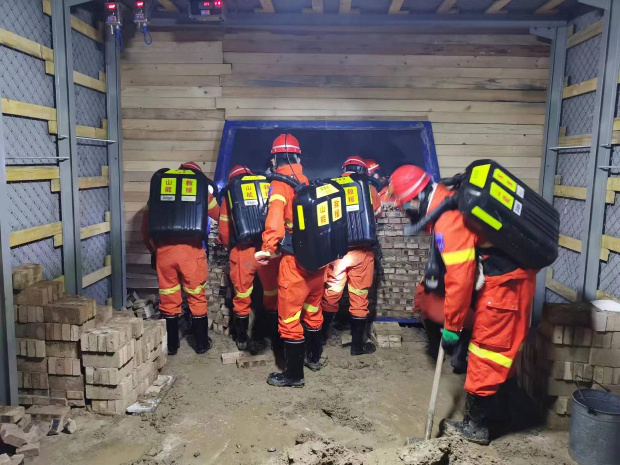 在安装高倍数泡沫灭火机、4m2砖密闭考核环节,各个参赛队队员不畏艰难、分工协作、密切配合、沉着应对、奋勇争先,尽最大努力、以最快速度完成了井下灭火和建密闭任务。