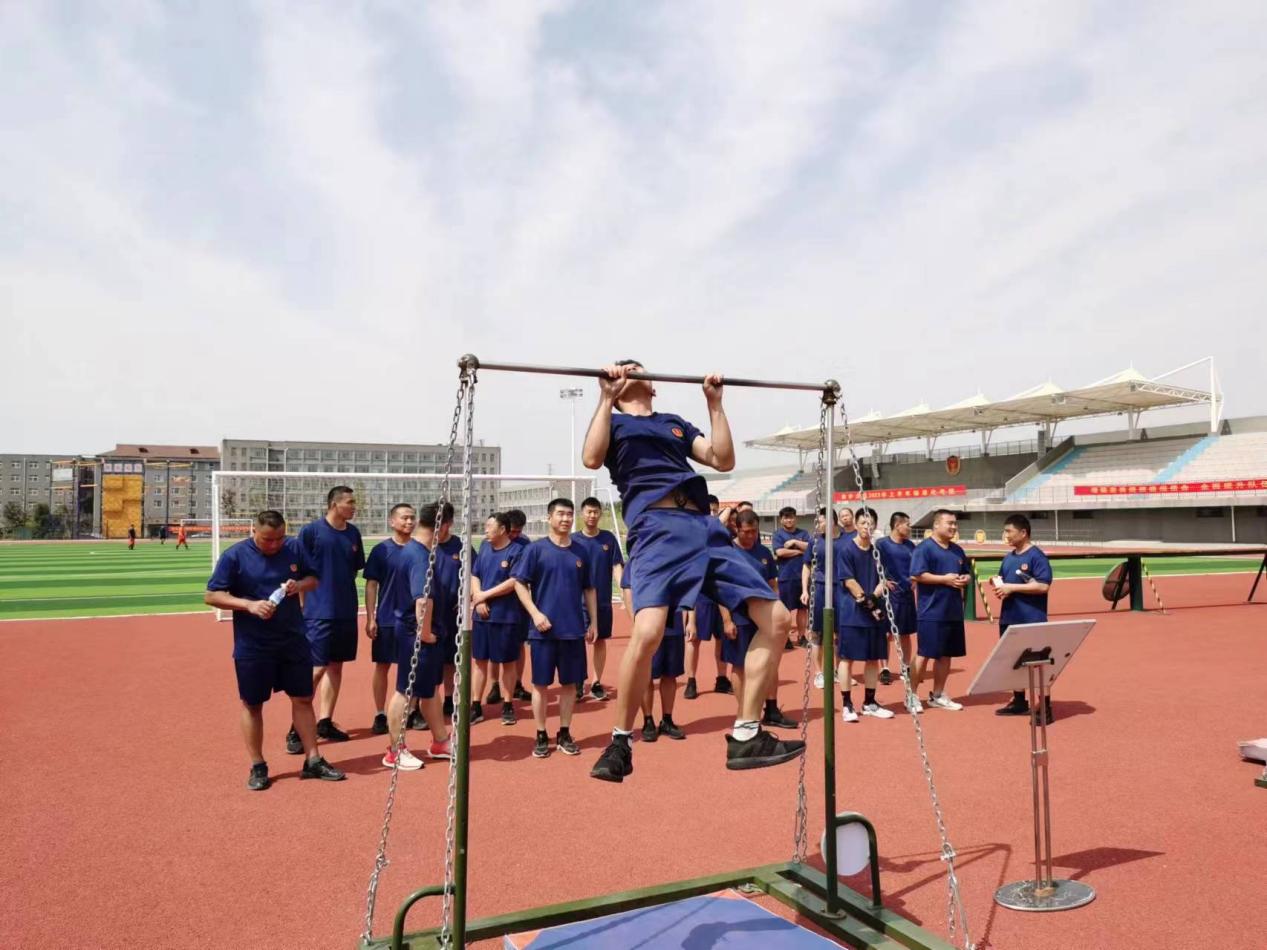 烈日炎炎下,顶着36℃的高温,面对如同烤炉般的操场,广大指战员们以饱满的精神、高昂的斗志,挑战自我,挑战极限,出色完成了军事化队列操练和爬绳、引体向上,2000m跑步等综合体质考核项目。