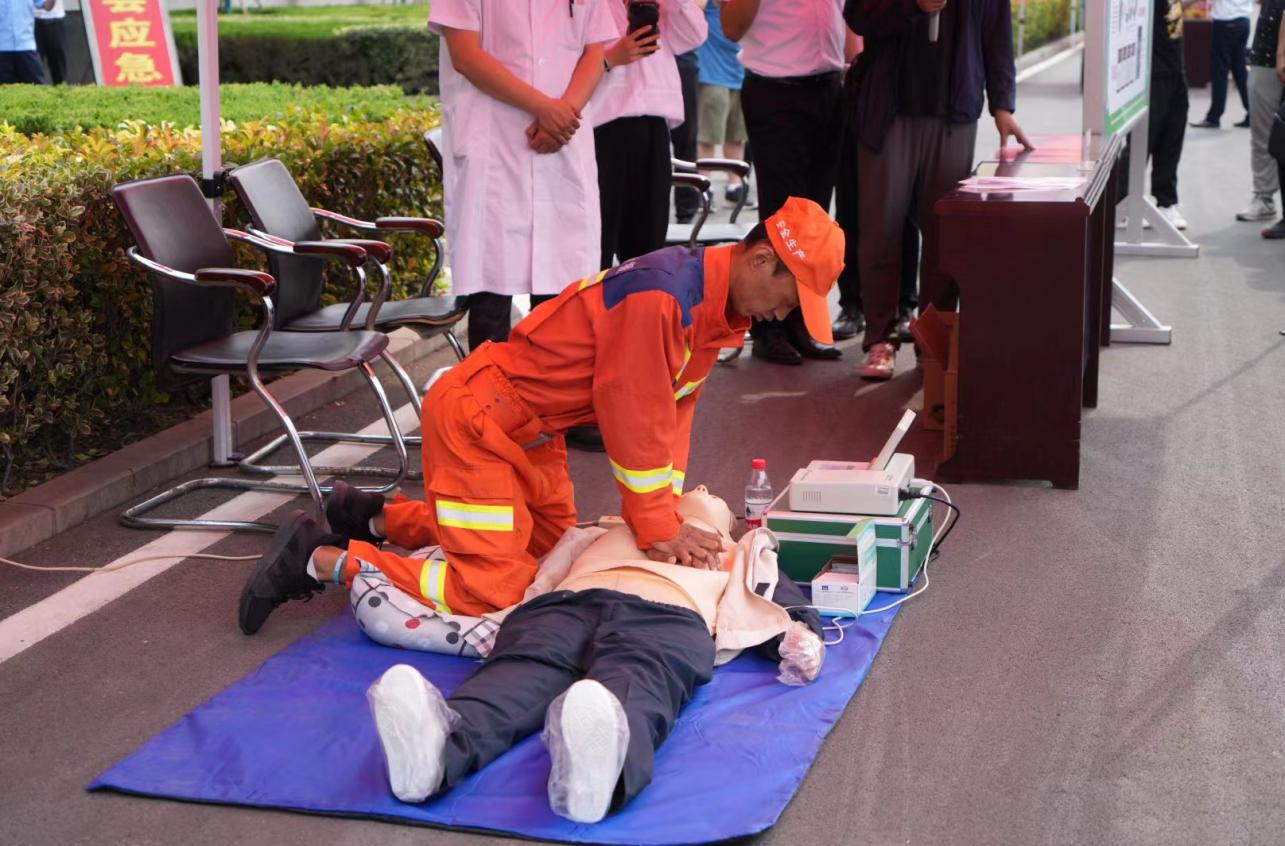 活动现场急救操作展示区,救护队员向大家演示如何正确进行人工呼吸和心脏复苏等专业急救技能,进行了苏生器实操展示,详细讲解了电动破拆工具组、红外热成像仪、人体搜寻仪等应急救援装备。