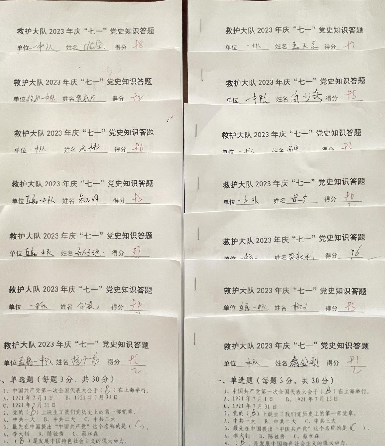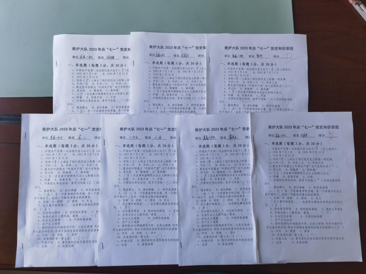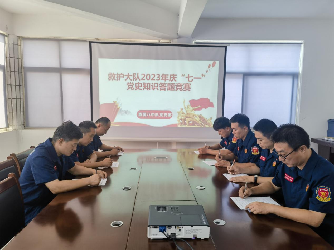 为深入学习贯彻党的二十大精神,热烈庆祝中国共产党成立102周年,大队精心组织下发《关于开展庆祝中国共产党成立102周年庆祝活动的方案》,6月25日,救护大队党总支组织各基层党支部分别开展“庆七一·理论知识我知道”党史知识答题活动。