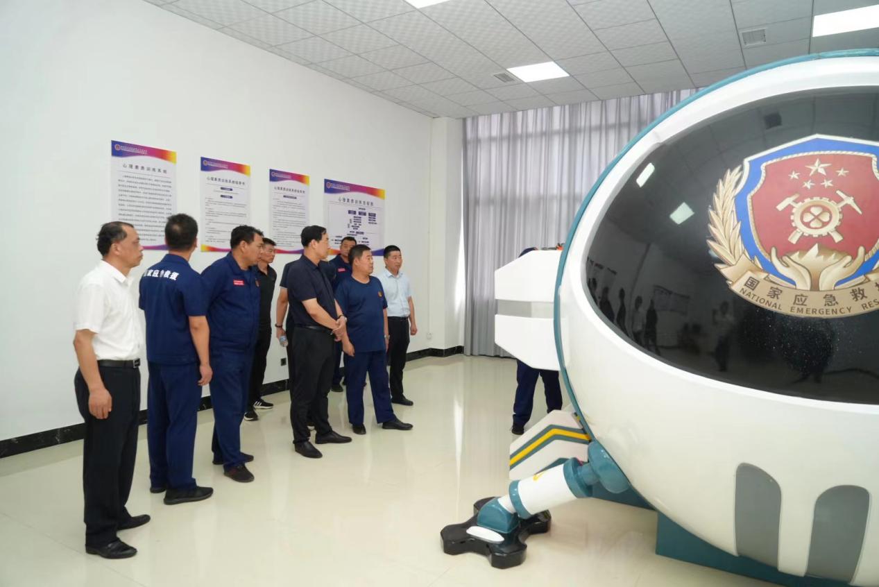 双方就队伍建设、装备配备、日常管理、技术操作等方面进行了座谈交流,共同观看了队伍建设视频资料。座谈结束后,徐矿集团救护大队到仿真模拟训练馆、装备库、井下模拟演习巷道、体能训练馆实地考察了大流量排水抢险车、矿井钻孔通信装置、移动供气源等救援设备,亲身体验了VR虚拟地震、9D电影等项目,并就救援装备配备及实际应用进行了深入交流讨论。