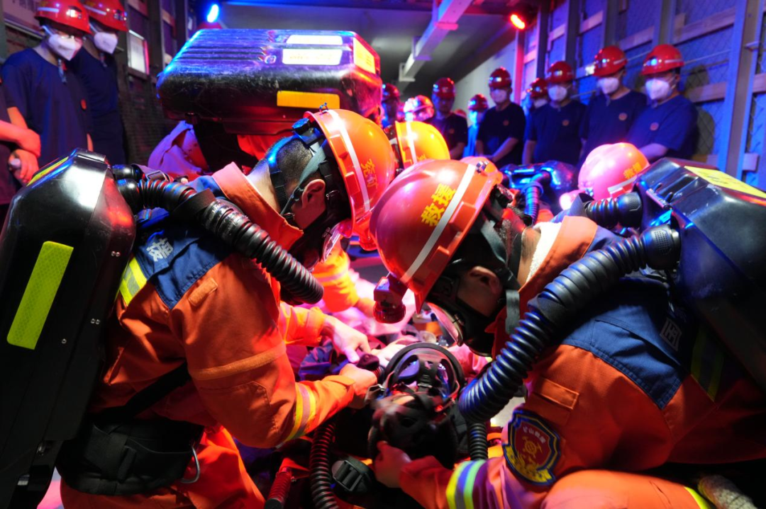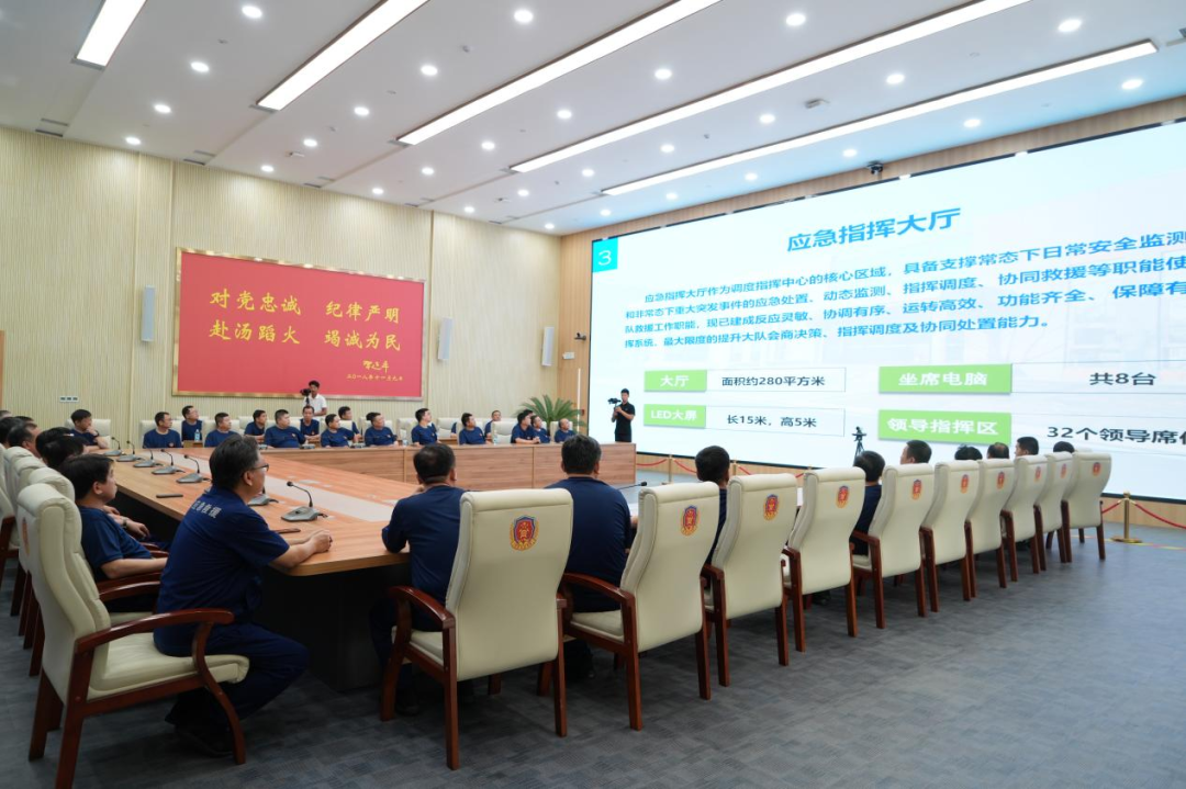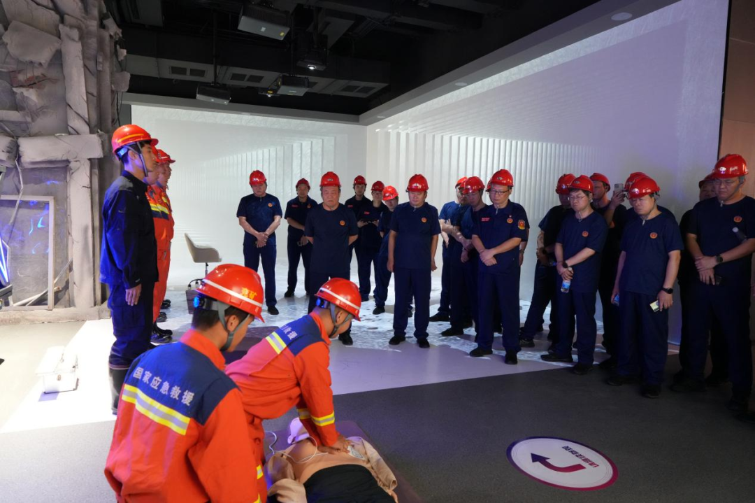 会前,与会人员共同观看了救护大队建设宣传片《扛在肩头的责任》,听取了应急救援中心建设汇报,参观了应急救援装备库、体能训练馆、模拟演习巷道、科普体验馆等基础设施。实地观摩了综合救灾演练、水域救援演练、盲眼拆装BG4呼吸器、更换两小时呼吸器、急救包扎、海姆立克急救法等作战能力展示项目。
