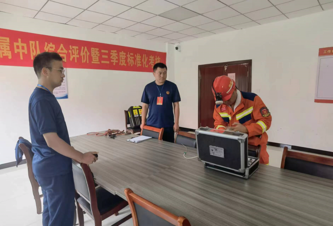 9月13日至18日,救护大队检查组一行6人深入陕蒙各驻矿救护中队,按照《矿山救护队标准化考核规范》和大队关于对中队管理人员进行综合考评的要求,严肃认真地开展了综合评价、三季度标准化考核和管理人员考评,真实客观评价陕蒙驻队整体建设水平和应急救援能力,通过查缺补漏、整改提升,逐步推动救护中队实战实训,提升救护中队全过程、全要素、全方位闭环管理水平。
