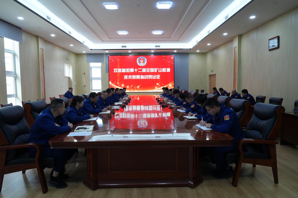 第十二届全国矿山救援技术竞赛将于10月16日-20日在安徽淮南举行,救护大队将代表山东省参加竞赛,10月14日上午,大队举行仪式,欢送参赛指战员踏上国赛征程。