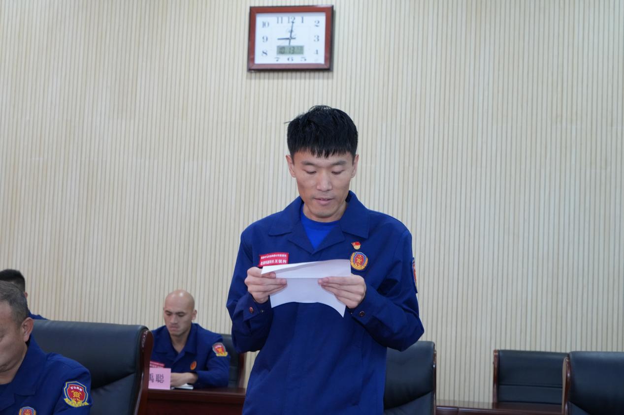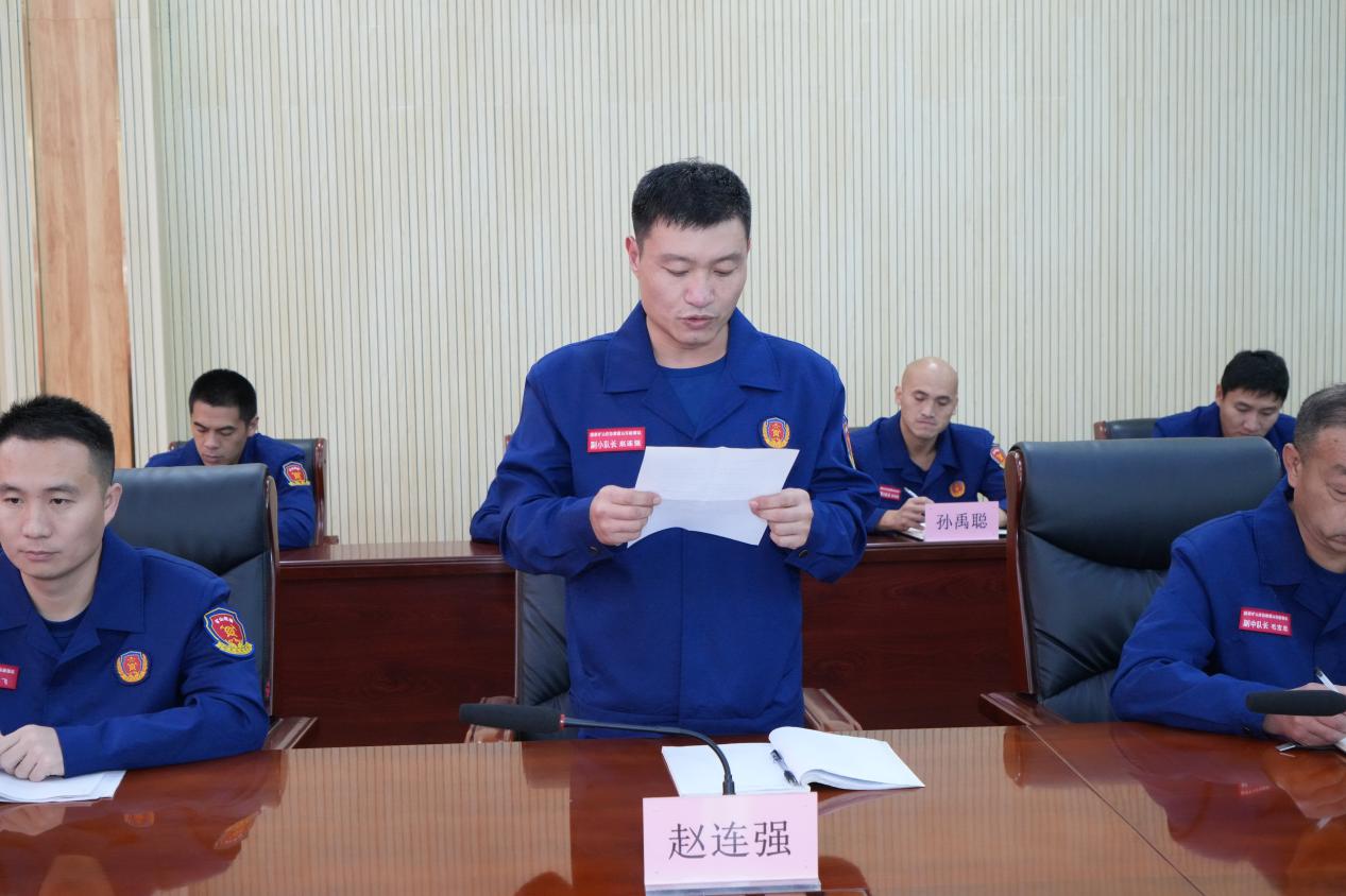 会议由总工程师王旭主持,会上,参赛队员代表赵连强、参赛指挥员代表王锐利分别作了表态发言,副大队长孙牧对集训队指战员备战期间的艰辛付出给与了充分肯定,预祝参赛指战员取得优异成绩。党委书记王斌勉励集训队指战员要以高昂的士气和精神面貌,赛出风格、赛出水平,放手一搏,力争取得优异成绩。