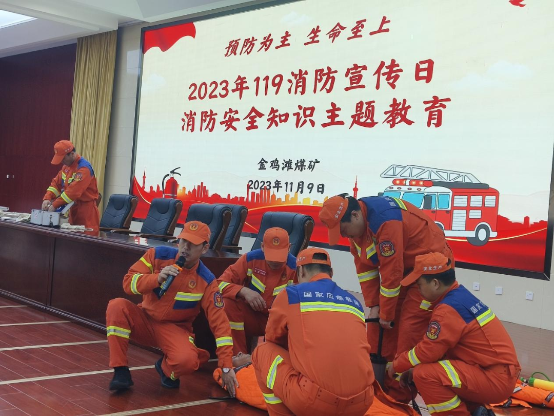 直属五中队组织中队骨干与金鸡滩煤矿联合开展了“珍爱生命、安全至上”消防宣传日活动,活动现场,通过设置咨询区、发放宣传资料等形式向广大职工普及现场急救措施、自救互救等相关知识,同时组织指战员现场演示苏生器使用前准备、心肺复苏基本要领、现场急救包扎等自救互救技能,吸引了广大职工踊跃参加。(柴疆)