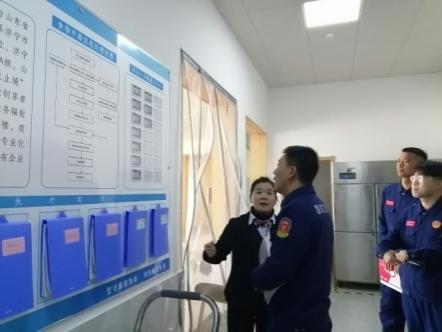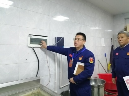 随后他们走进操作间,查看用电安全、环境卫生、每日消毒记录、蔬菜肉类原料的新鲜度。