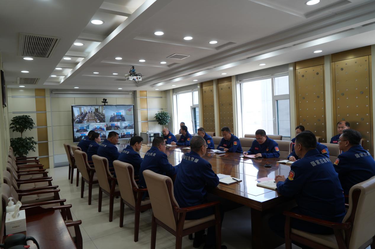 大队领导班子、副总师、各科室主要负责人及留勤人员、各直属中队在岗指战员参加视频连线会议。
