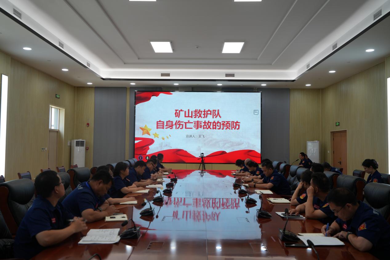 直属一中队王飞讲授《矿山救护队自身伤亡事故的预防》,通过对各类伤亡事故的原因分析、事故预防措施等进行全面的讲解,使各位指战员更加全面地认识到矿山救援的重要性。