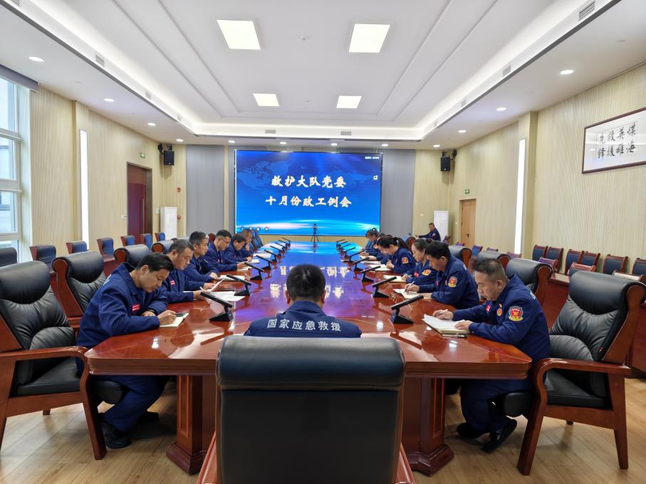 10月22日,救护大队党委召开10月份政工例会,全面总结10月份党建、信访稳定、宣传报道、综治及消防等工作,安排部署下一步重点工作。会议由党委副书记王永主持,各党支部书记、职能部室(中心)负责人及相关