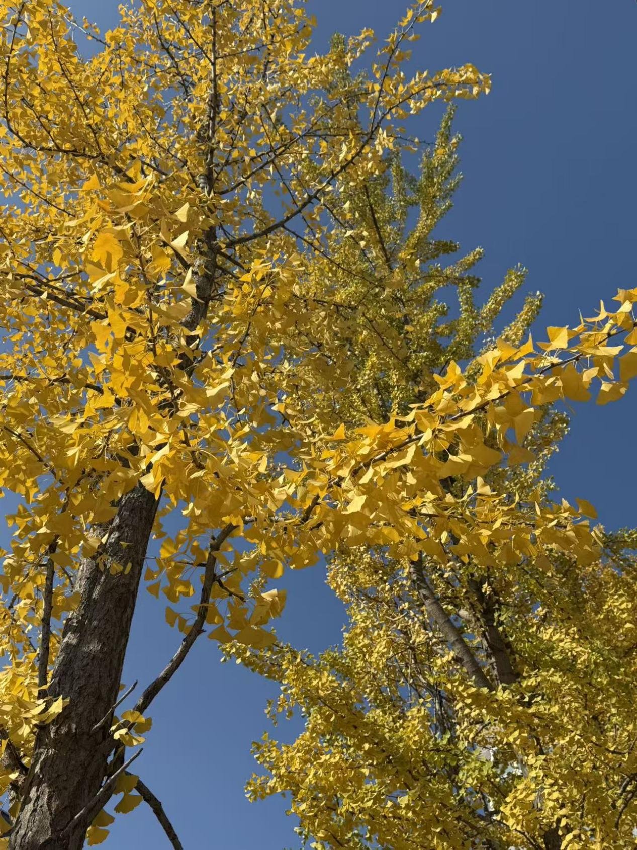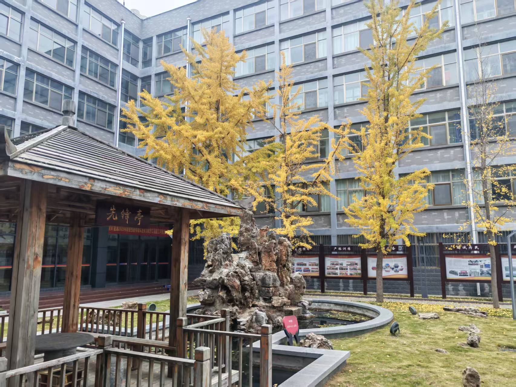 金叶子扑簌簌落下,假山、绿草、黄叶,和远处现代的办公楼相映成趣——原来严肃的救护大队,也有这么温柔的一面!