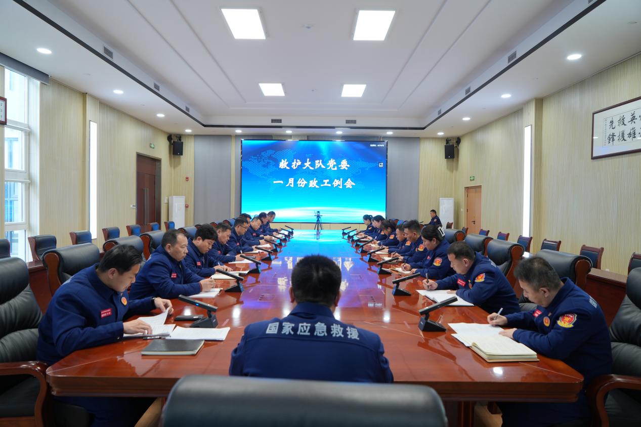 1月7日,救护大队党委组织召开1月份政工例会,全面总结2025年12月份各项工作,安排部署2026年1月份重点任务。大队党委副书记王永主持会议,各党支部书记、职能部室(中心)负责人及相关工作人员参加会议。
